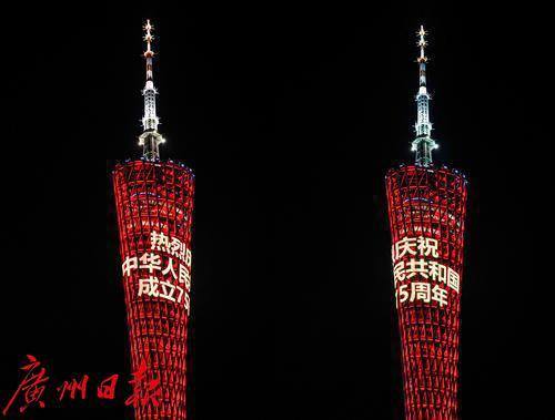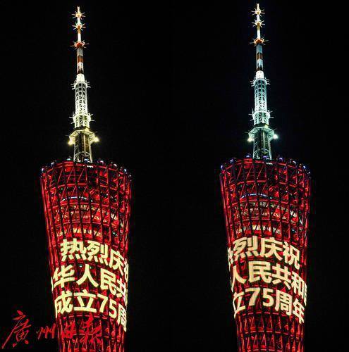 9月27日晚至29日晚,广州珠江沿岸各处灯光璀璨,色彩绚丽,广州塔、琶洲西区、海珠广场、海心沙、猎德大桥、一江两岸24栋楼宇等地标性建筑的外立面齐齐亮起了国庆主题灯光秀,为中华人民共和国成立75周年送上美好祝福,营造出“热烈、欢乐、喜庆、祥和”的节日气氛和“团结奋进、昂扬向上、开拓创新”的社会氛围。
