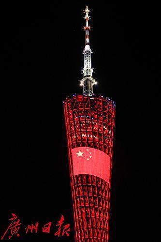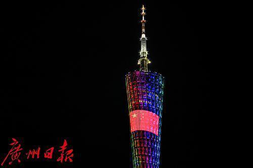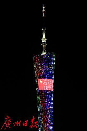 广州塔亮起国庆主题灯光秀