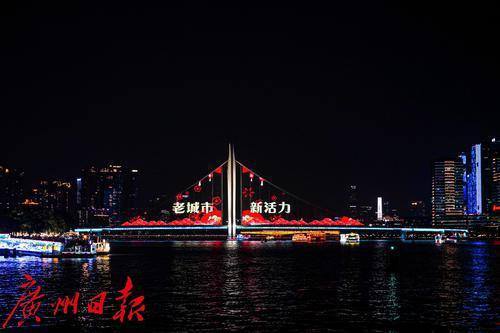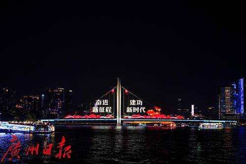 猎德大桥亮起国庆主题灯光秀