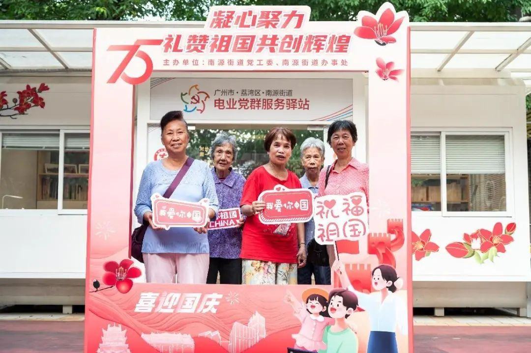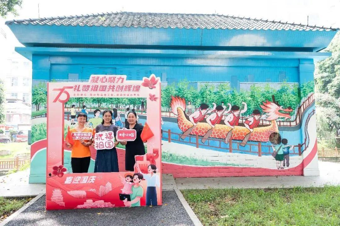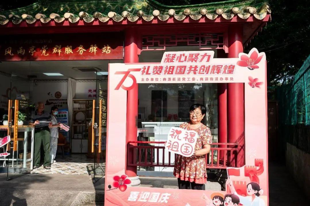 街坊们通过这些打卡点的互动,既增强了对社区群众性文化活动的参与感,也将个人的爱国情感融入集体的欢乐庆祝中,充分展现了南源街道居民团结一心、祝福祖国的美好情怀。