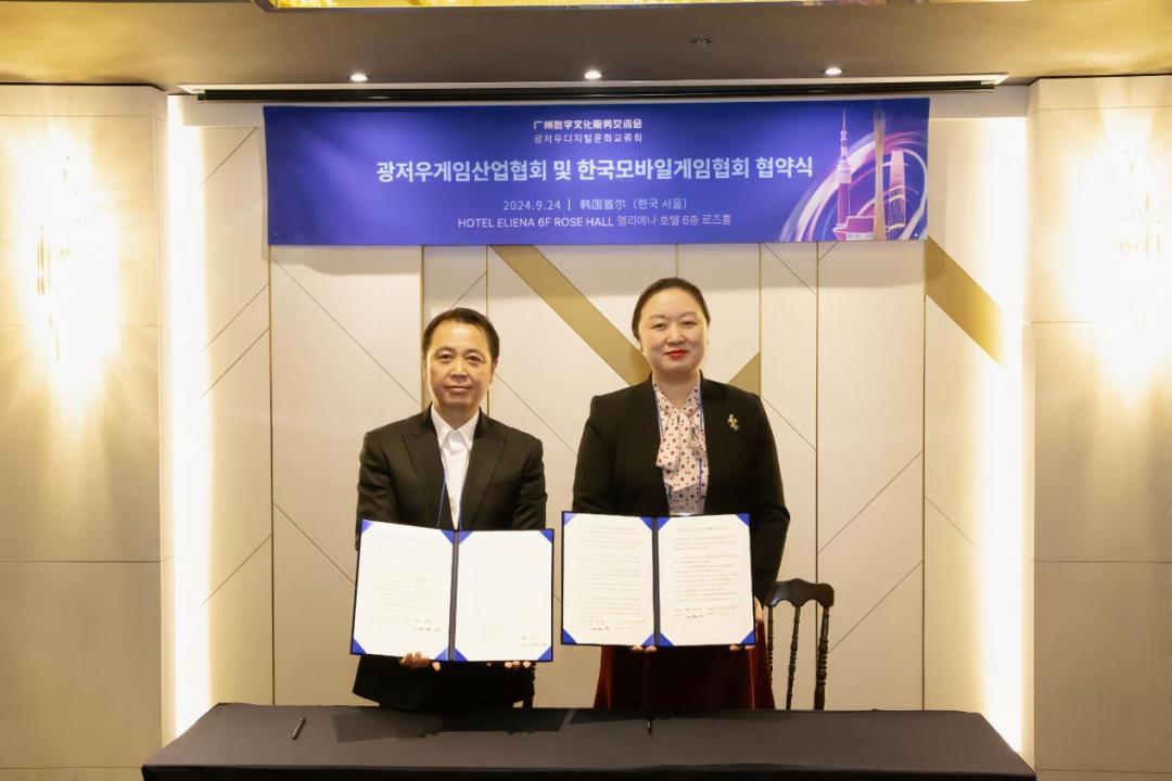 会上,广州市游戏行业协会与韩国手游协会签订了《促进双方游戏产业发展框架合作协议》,共同致力于加强两国游戏产业之间的联系,推动商业合作,共享双方资源,探索新的市场机遇。