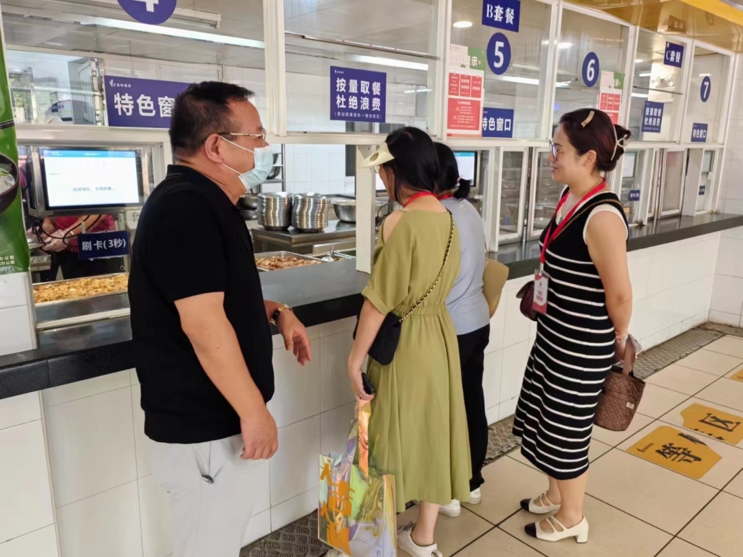 目前,该校总务处负责饭堂的日常管理。饭堂每天的饭菜出锅后,总务处相关负责人会一样样地进行试菜。每天,该负责人也会巡视饭堂厨房、仓库、冰库等地,包括巡查并记录仓库食品的保质期。该校建立了行政教师值班陪餐制度,即老师与学生一同进餐,学生可向值班老师反馈意见。