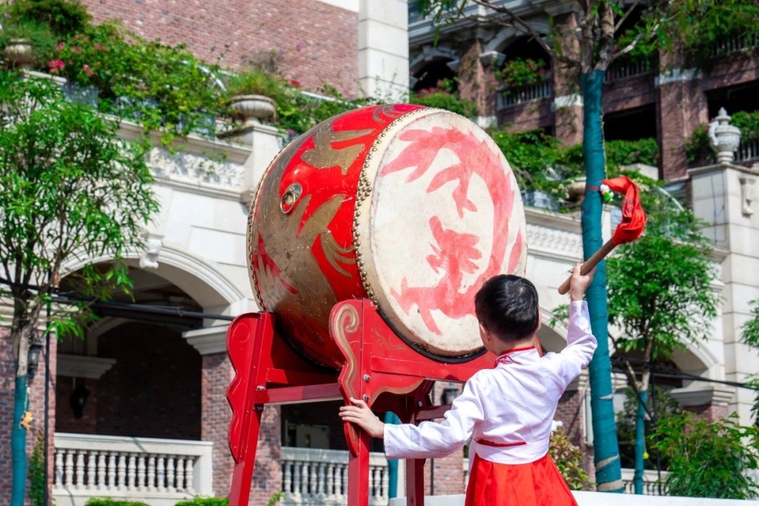 击鼓鸣志,庄严的鼓声寓意着孩子们远大的志向,立志勤奋学习,勇于探索未知。