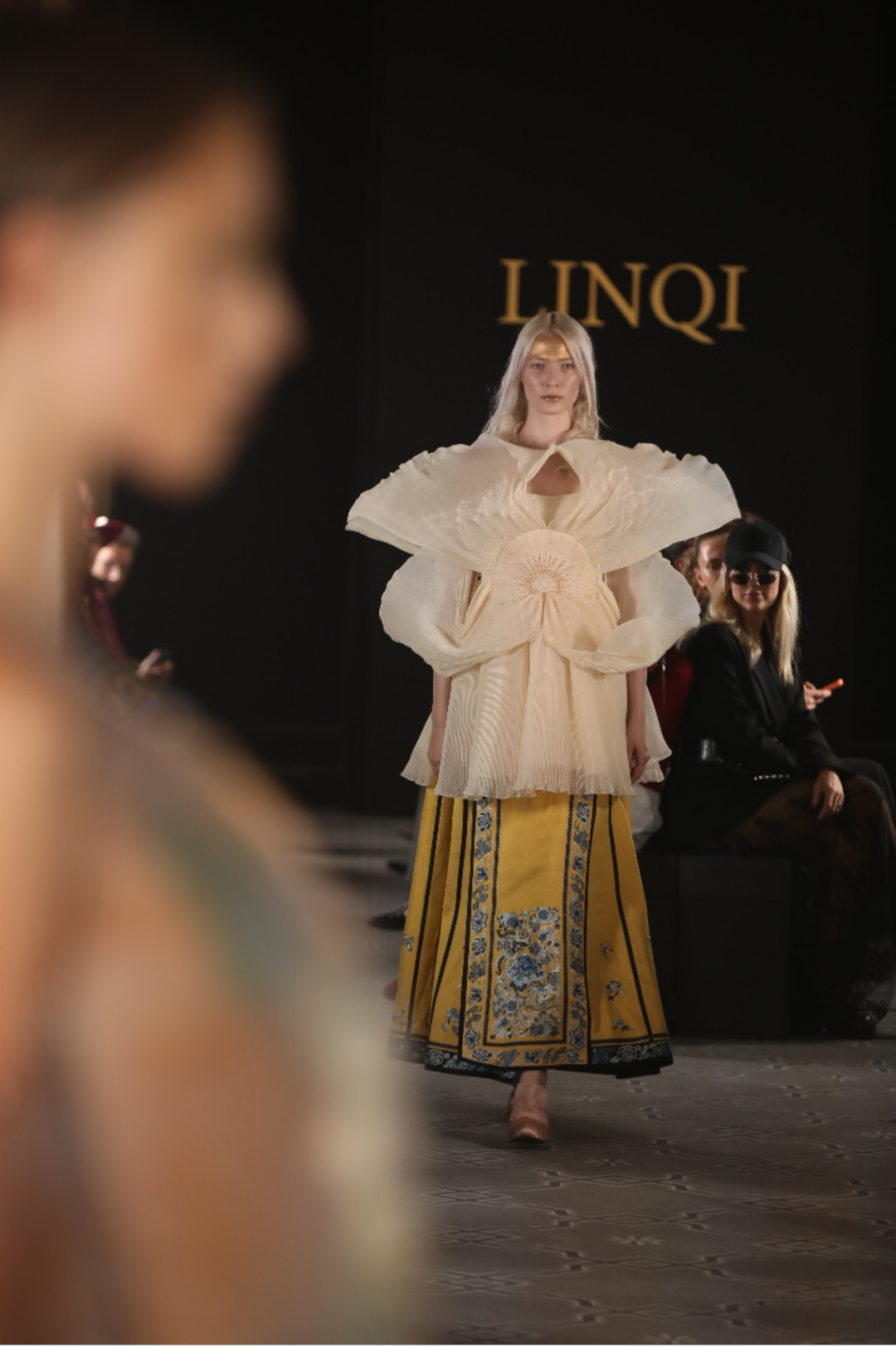 记者了解到,为展现中国服饰文化的风采,9月27日,林栖个人设计师品牌“LINQI”在2025春夏巴黎时装周首次亮相,并以“Après la pluie雨后”为主题,呈现一场沉浸式服装设计盛宴。大秀中,林栖通过独到的设计理念,融合马面裙非遗文化与设计工艺创新,展现中国当代女性“自我觉醒与重塑”的故事,让世界一睹东方服饰文化的韵味。此前,林栖多次在国际舞台上发布设计作品,而此次则是“LINQI”品牌在国际舞台首次登场,对两者而言,均具里程碑意义。