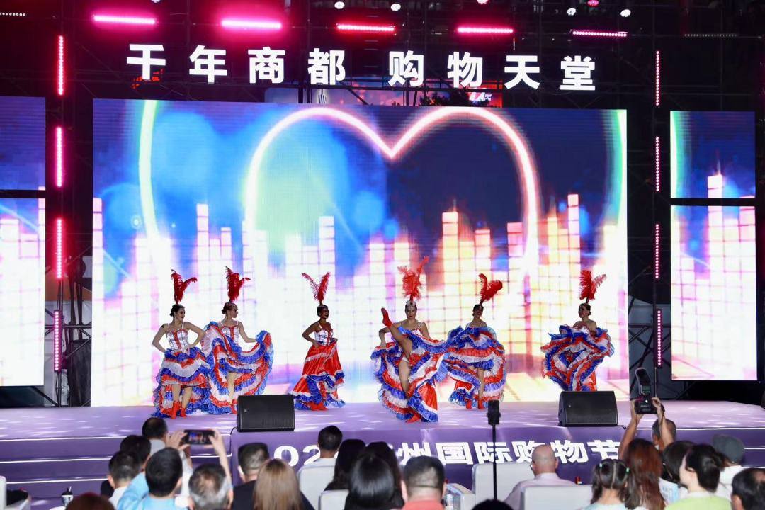 在启动仪式上,纯真的童声清澈回荡,中法两国的小女孩共同登台,唱起了世界脍炙人口的儿歌《幸福拍手歌》。随后,天河路商会与中国法国工商会代表嘉宾互赠礼物,为中法合作的繁荣发展以及广州购物节的盛大开幕送上祝愿,随后,法国舞者更是带来一段热力全开的法式康康舞,舞步与巴黎奥运开幕式同款,展现了广州国际购物节一直坚持的全球视野和多元文化特色。