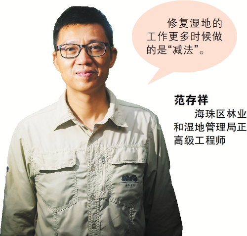 在进入海珠湿地开展湿地修复之前,我在水务系统工作,主要负责水务设施运营等,这份工作更多需要站在人的角度思考。