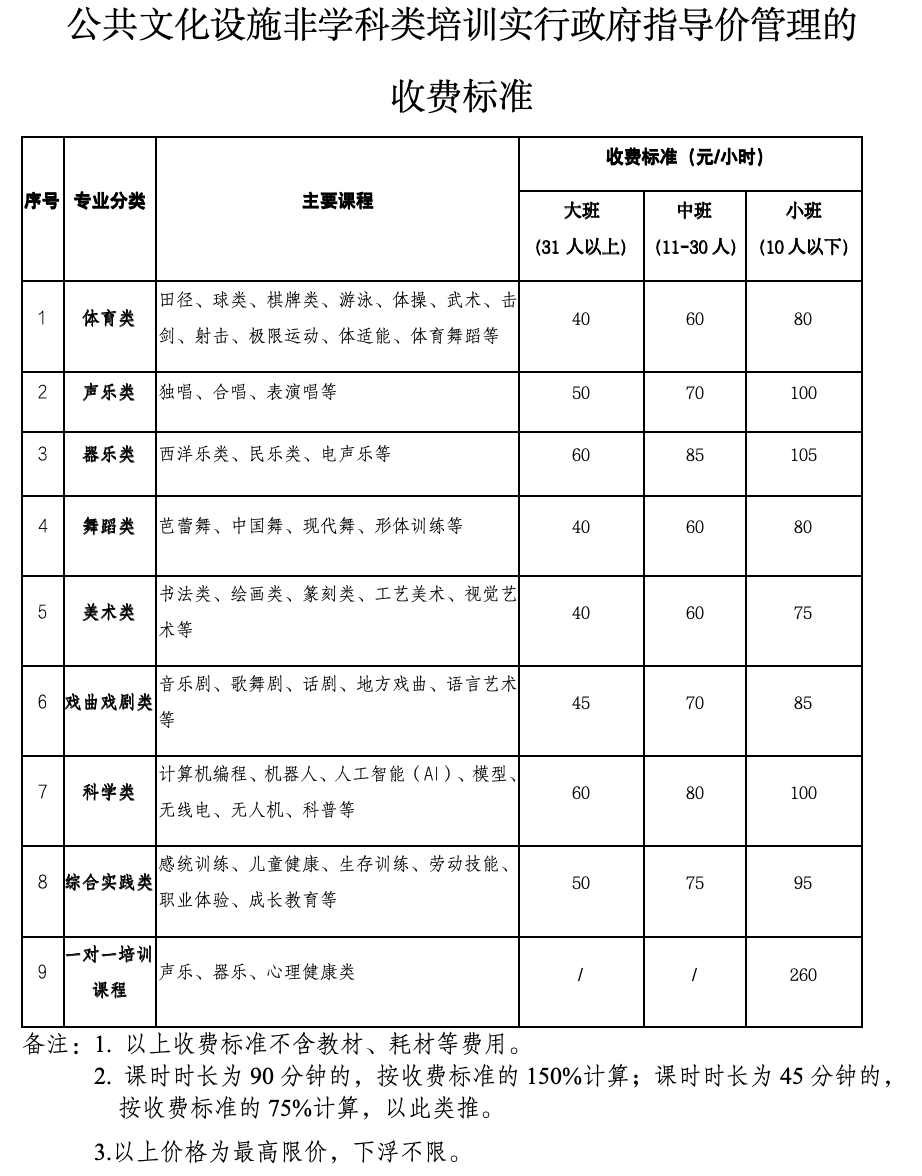 以财政性资金为主建设的公共文化设施,在保障基本公共文化服务的基础上,根据其设施属性和服务性质,分别实行政府指导价和市场调节价。设施开放、举行非学科类培训,以及举办投入较大且确有观赏价值的普惠性非基本公共文化服务,如临时展示展览、文艺表演、沉浸式体验等收取费用的,实行政府指导价。依托其提供的餐饮、设备租借、文化活动策划、文创产品销售、文物(艺术品)保护修复、定制化导览、用于非研究用途的数字资源授权等辅助性服务,实行市场调节价。