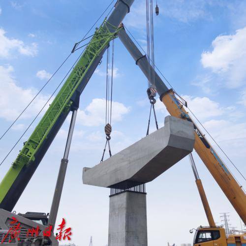 东晓南路—广州南站连接线南段工程 预制装配式桥梁盖梁安装。