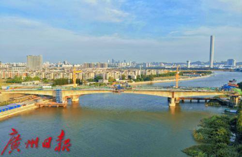 东晓南路—广州南站连接线南段工程重要节点工程大石水道桥顺利合龙。