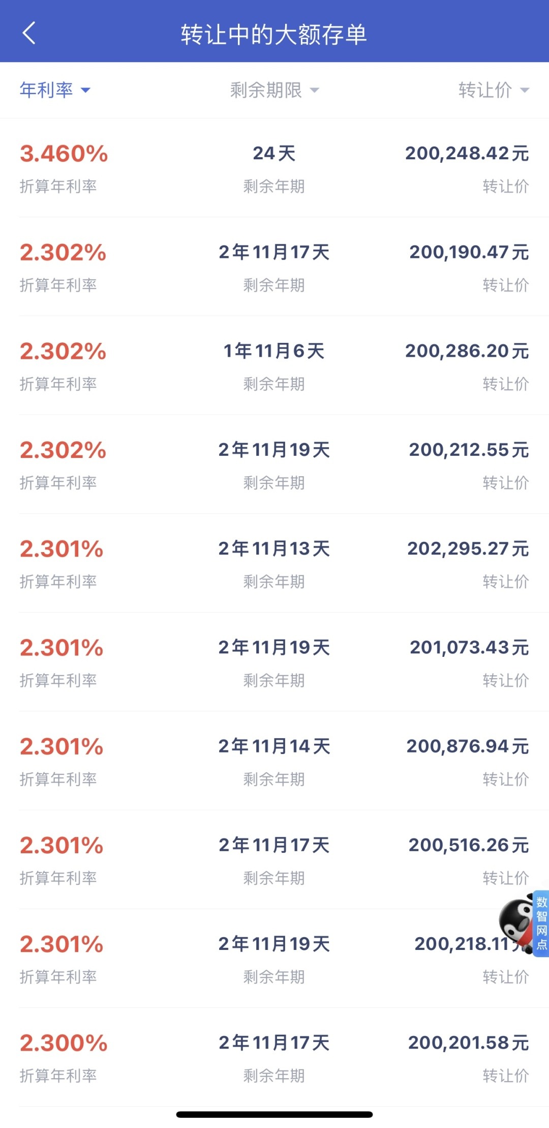 记者调查发现,多家银行的大额存单转让区都热闹了不少,而且部分客户为求快速脱手,甚至会抬高转让的利息,转让区中频现折算年利率在3%及以上的存单。