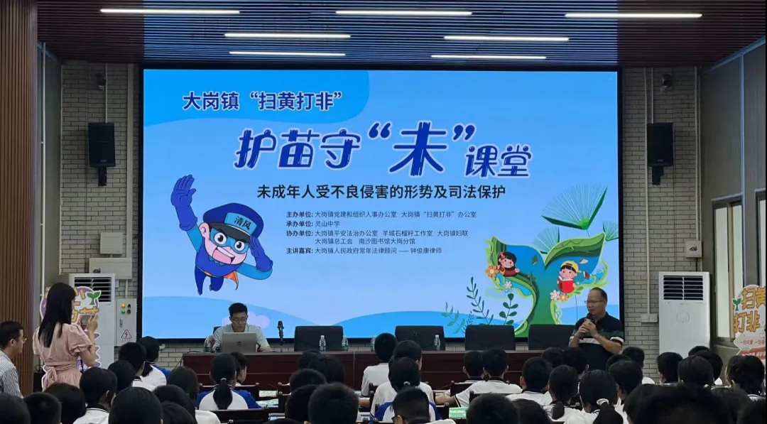 大岗镇灵山中学邀请法律顾问为同学们带来一场题为《未成年人受不良信息侵害的形势及司法保护》专题讲座。通过一系列生动鲜活的生活实例和真实案例,深入剖析了未成年人面临的网络色情、暴力、诈骗等不良信息侵害的严峻形势,“清风侠”也到现场与同学们亲密互动,分发“绿书签”文创纪念品。