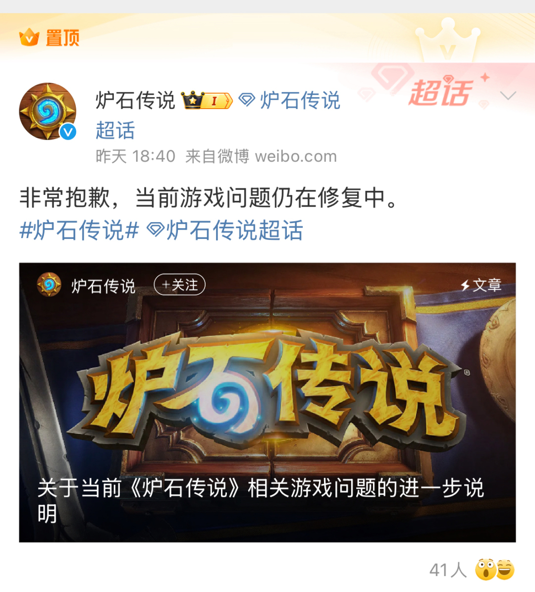 彼时,运营团队表示,目前国服真的遇到了非常棘手且繁杂的问题。在过去的近40个小时中,暴雪的技术团队一直在对问题进行修复,国服团队也不断进行着技术配合与问题反馈。除了炉石开发团队与战网技术团队外,已经有更多团队加入到技术支援之中。