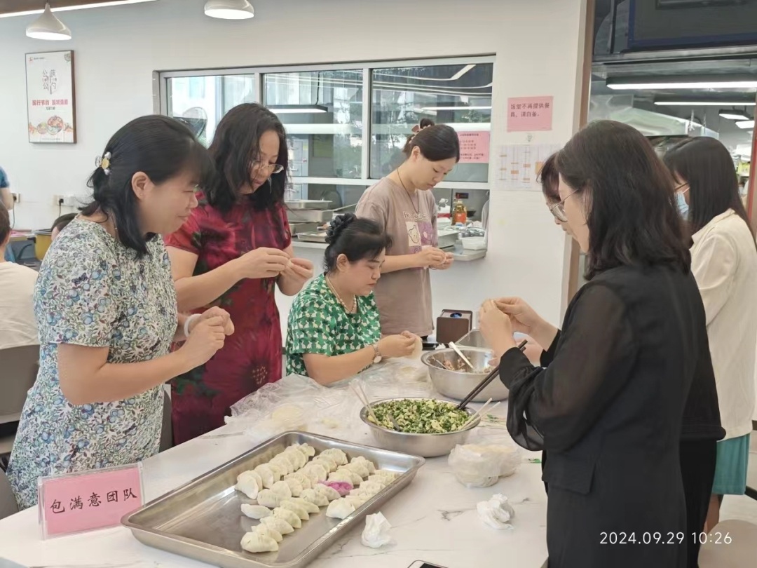 活动当日,“饺饺者团队”“包满意团队”“团团圆圆队”三个包饺子小队大展手艺。大家分工合作,有的心灵手巧地和面,有的娴熟地擀皮,有的精心调配馅料,还有的则专心致志地包饺子。整个活动现场欢声笑语,大家配合默契,共同享受着包饺子的乐趣。