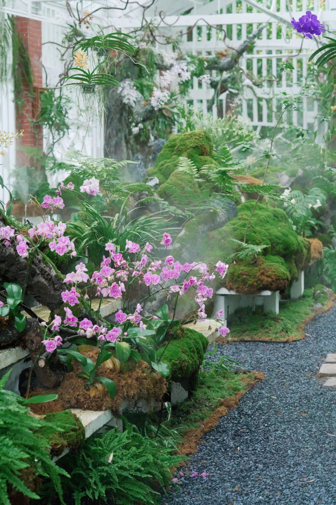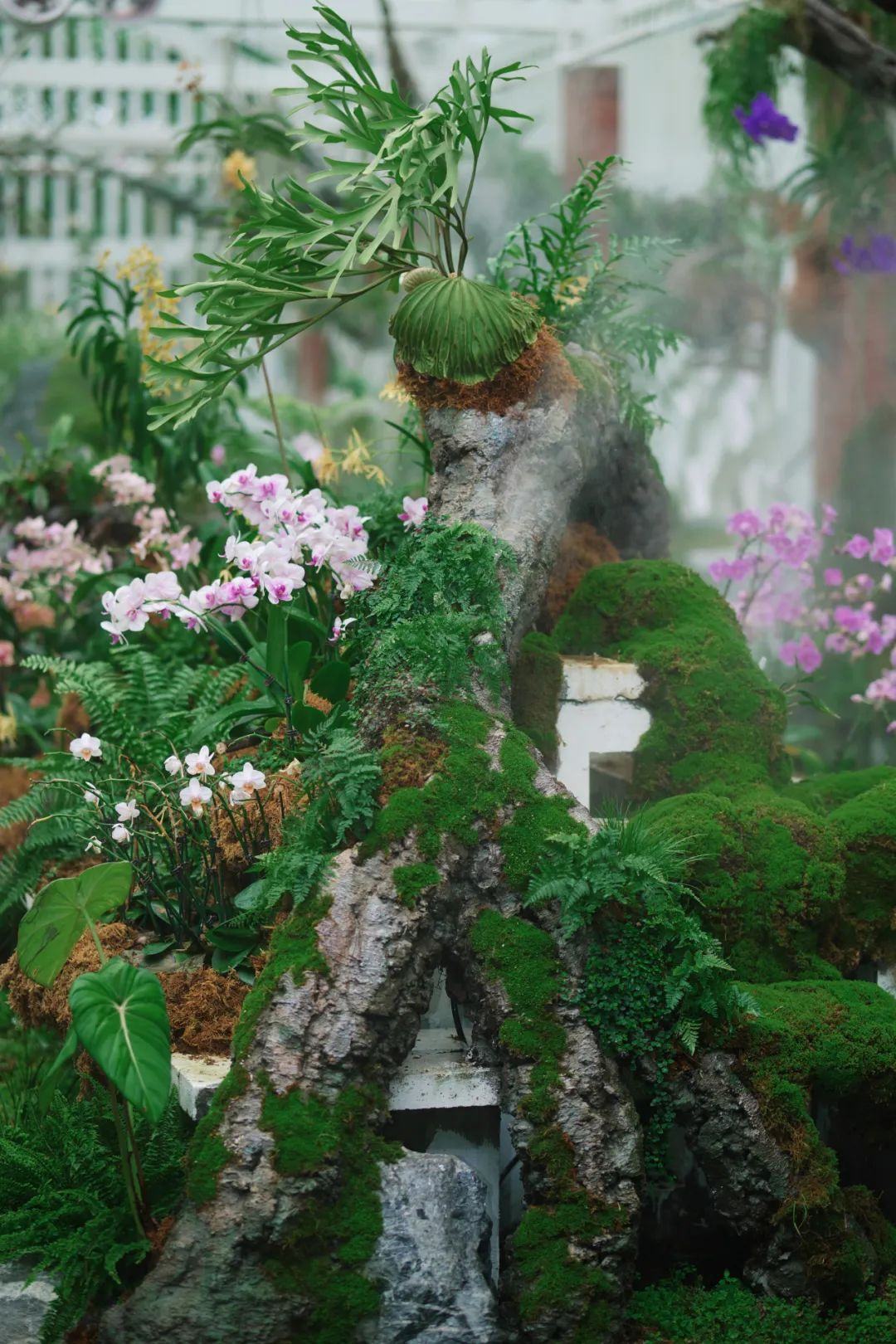 步入“兰蕨秘境”展馆,仿佛踏入了一个梦幻般的绿色世界。大面积、多品种的苔藓植物巧妙布局,尤其是那点点“星星藓”,引领人们探索自然的奥秘。150多种兰蕨植物在此竞相绽放,艳丽的卡特兰、清雅的石斛、轻盈的拟堇兰……每一抹色彩都是大自然最真挚的献礼。