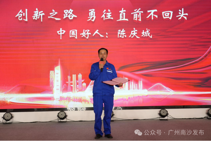 故事会现场,“中国好人”陈庆城分享了精攻焊接技术精益求精、为海洋强国梦不断突破自我的故事。