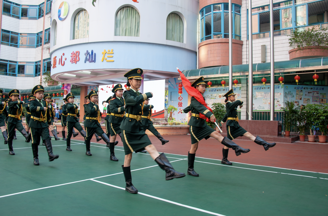 广州市黄埔区荔园小学的校园女子国旗护卫队