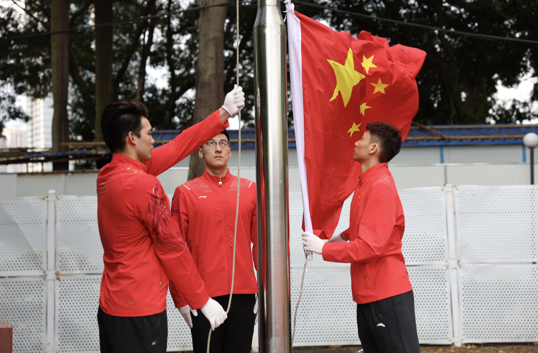 广东二沙体育训练中心是新中国第一个体育训练基地,培养出了一批奥运冠军、世界冠军、亚运会冠军、全国冠军。这里始终高高悬挂着一面国旗,激励运动员去追梦,力争在国际赛场登上最高领奖台,升国旗、奏国歌。第十五届全国运动会举行在即,广东体育健儿以奋勇拼搏精神积极备战,期待在家门口创造新辉煌。8月开始,中心每月初举行一次升旗仪式,由各运动项目中心的国旗护卫队员轮流担任升旗手,以增强中心全体人员的荣誉感、责任感和使命感,点燃运动员备战十五运会的激情。