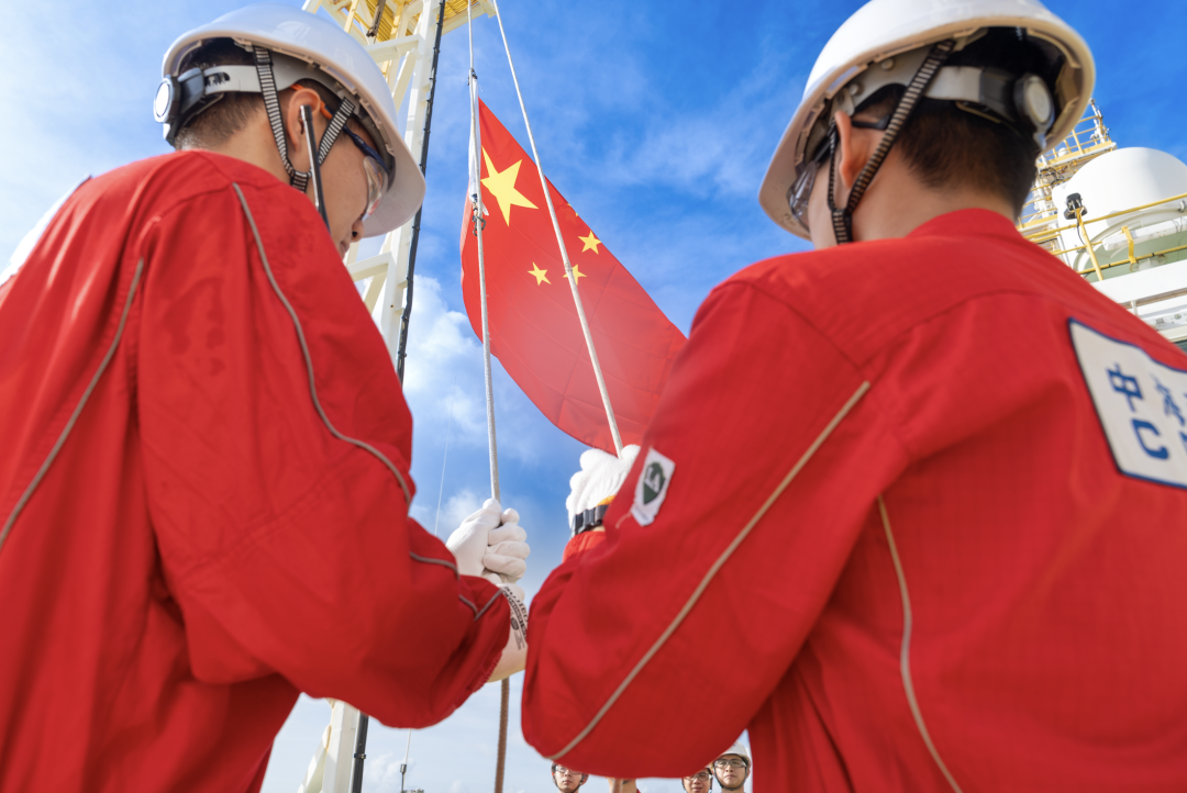 “每当五星红旗在海风中徐徐升起,那一抹‘国旗红’,总让我想起第一次在‘海洋石油982’钻井平台举行的升旗仪式。”该钻井平台经理柯有为清晰记得,2018年,我国自主设计建造的第六代深水半潜式钻井平台“海洋石油982”在南海迎来首钻,他在这一大国重器上目睹五星红旗在蓝天碧海间飘扬,心中充满自豪与激动。