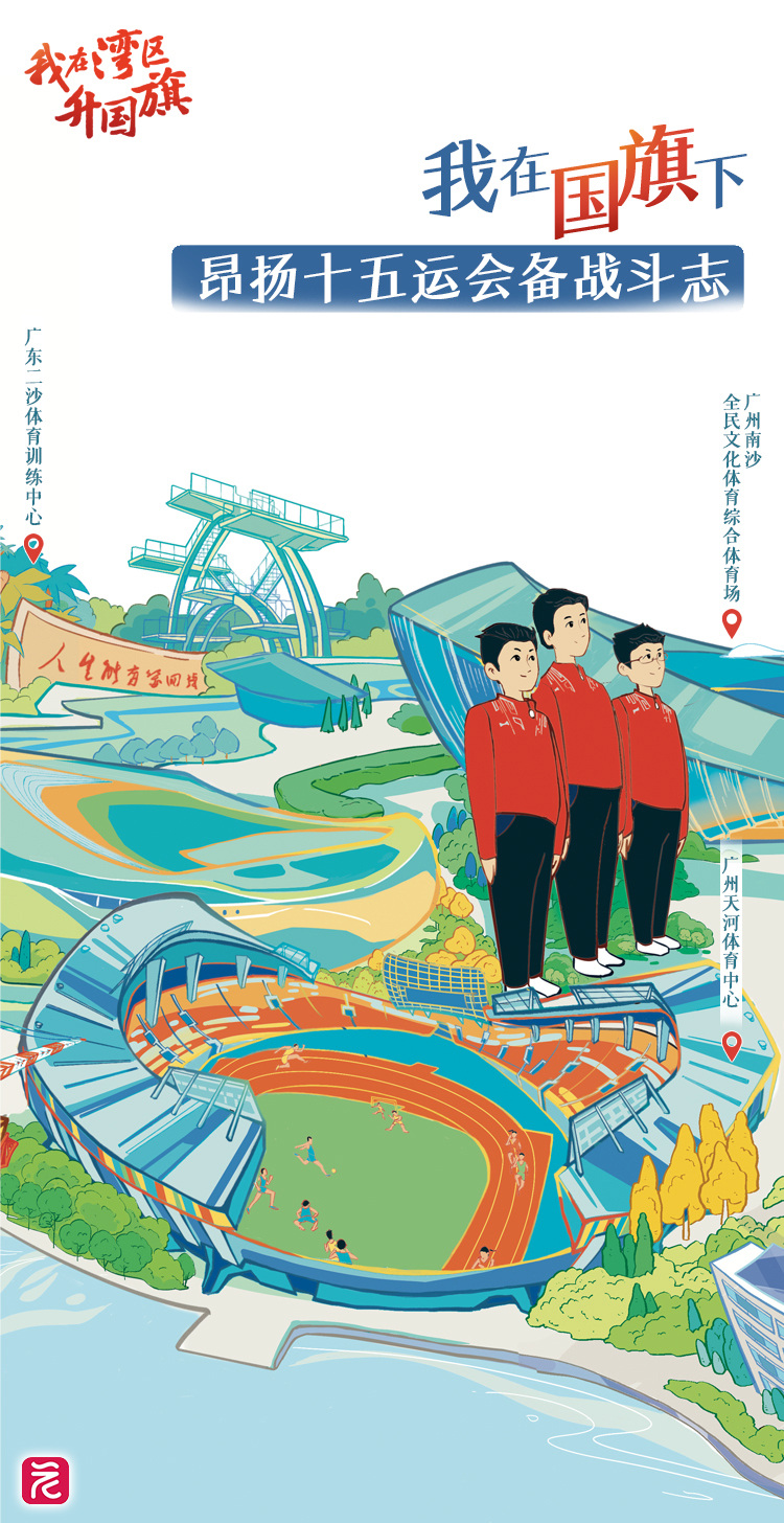 湾区同升一面旗,凝聚奋进力量。工作人员周剑锋和同事在广交会开幕前升起国旗,向世界昭示开放自信;二沙体育训练中心,运动员梁宝棠成为训练中心国旗护卫队第一位升旗手,备战十五运会的风姿迎风展现;“海洋石油982”钻井平台,建设者柯有为在大国重器上升起国旗,肩上逐梦深蓝的使命又重了一分……五星红旗里,有大湾区人昂扬向上的志气。