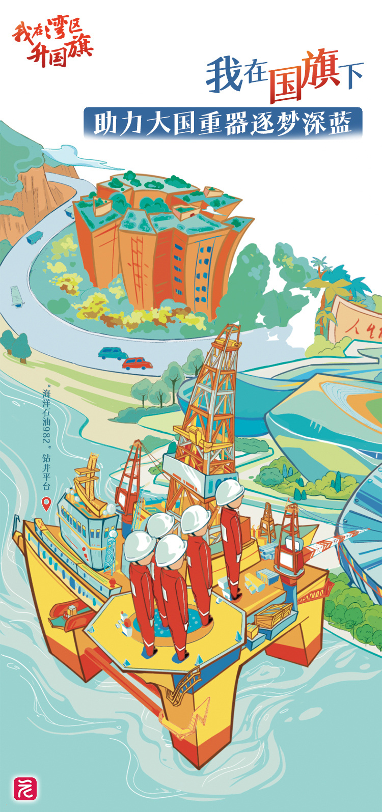 “海洋石油982”作为主力钻井平台,参与了中国首个自营超深水大气田“深海一号”一期工程的建设。一期工程完工投产后,一直稳定持续向粤港澳大湾区输送民用天然气。2023年,平台又在二期工程中高效完成12口深水气井作业,总井深超过6万米,该项工程完成后,将为大湾区提供更加坚实的清洁能源保障。在这期间,柯有为从升旗仪式的参与者成为升旗手,“手捧着五星红旗,我心中的骄傲达到了顶点。看着国旗缓缓上升,与身后的大海交相辉映,我感到肩上能源报国的使命又重了一分。”