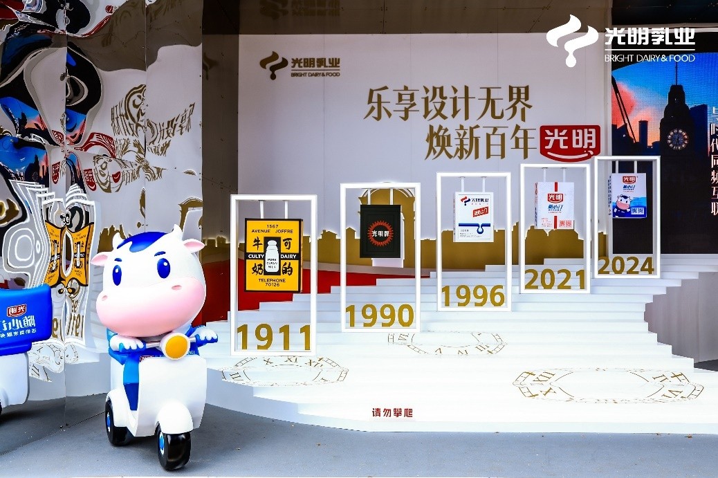 值得一提的是,在今年的世界设计之都大会上,光明乳业以“百年光明之路 焕新领鲜未来”为设计理念打造特展。展台陈列了光明乳业的一系列核心产品,并打造了光梯区、数字资产区、上博区、奶箱陈列展示区、双城之战区、体育区、美术馆区、艺术节区等八大特色展区。