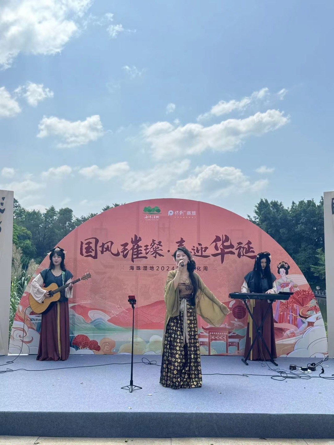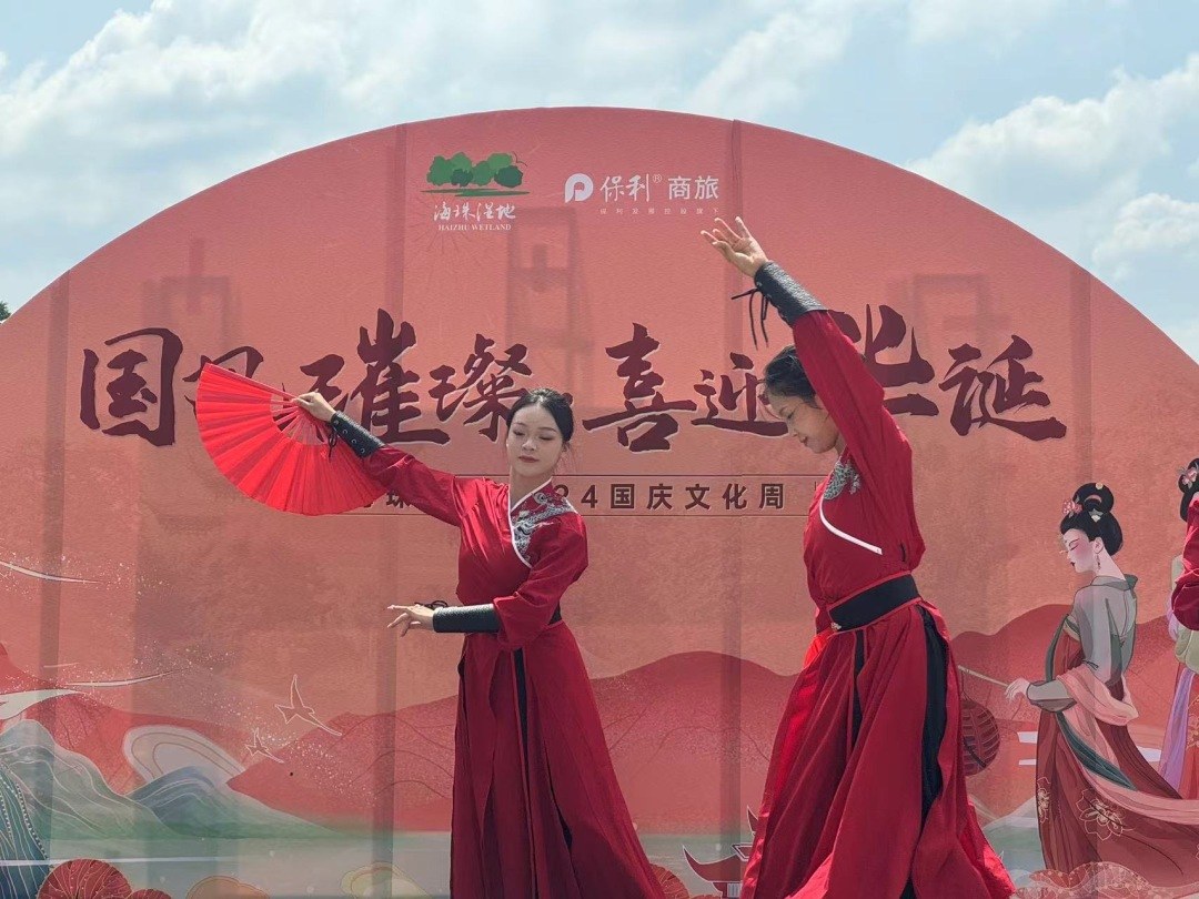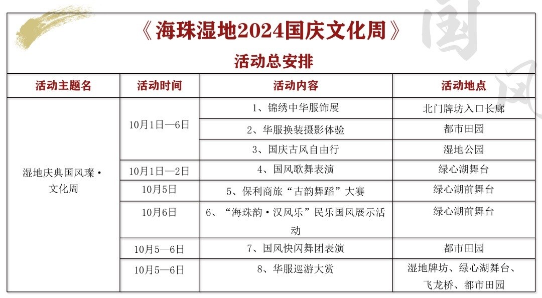 国庆假期首日,广州各大景区都准备了丰盛的文旅活动迎接广大市民游客。而海珠湿地2024国庆文化周也正式启动,此次活动主打国风之美,有中华服饰展、华服换装摄影展以及国风歌舞表演等。