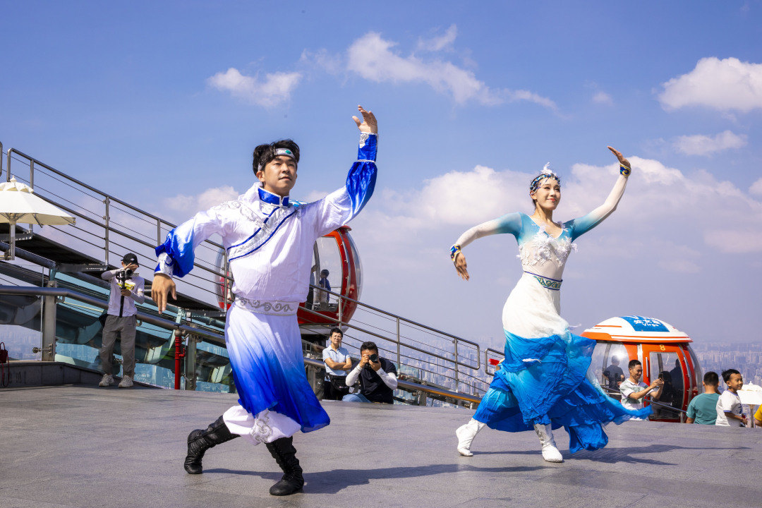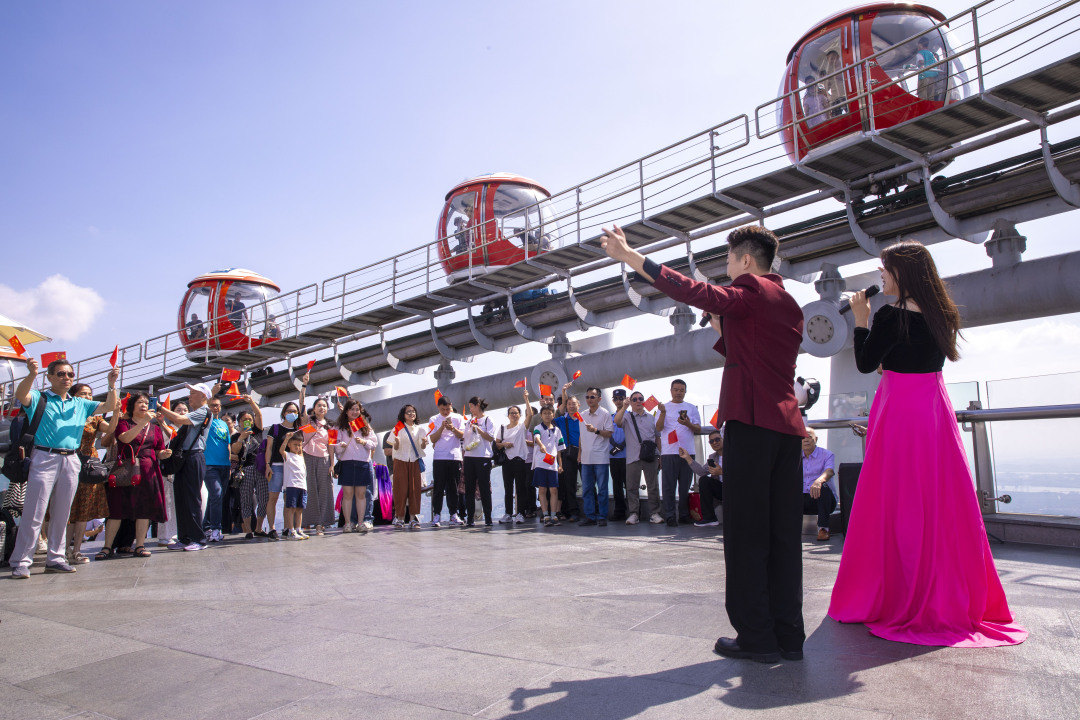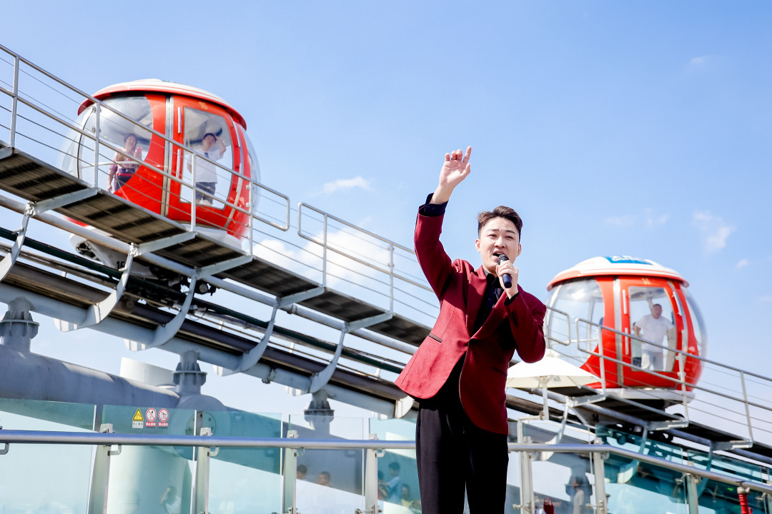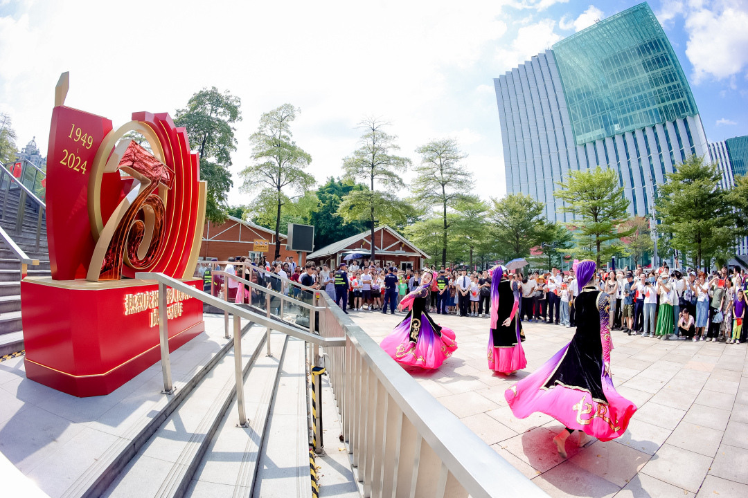 10月1日上午,广州塔450米高的户外观景平台及西广场迎来了一场别开生面的“我和我的祖国·红色颂歌”文化旅游快闪活动。来自南方歌舞团的艺术家们,以精湛的舞艺和嘹亮的歌声,依次演绎了《美丽中国》《舞动华章》及《祝祖国生日快乐》等一系列精彩纷呈的歌舞节目,为在场的市民与游客带来了一场视觉与听觉的双重盛宴,展现了极高的艺术水准。