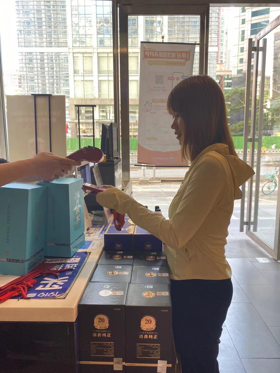店长陈女士说,全天来看,线下购酒的消费者一般选择饭点前来买酒居多,晚饭前相对更多一些。话未说完,后台就接到线上订单。“假期送货上门的订单多了不少,昨天就有三十单,比去年国庆多了10%的量。单大的,我们会安排跑腿送货。有的客人一买就是一箱,比如昨天就卖了一箱汾酒20,直接送到客人吃饭的餐厅,他们吃饭用的。”陈女士告诉记者,国庆假期第一天的营业额同比上涨10%~14%,门店人流量同比回升10%。相比起中秋假期白酒送礼属性,国庆假期白酒的消费场景更多是自饮。她说从昨日与今日的门店销售情况看,五粮液八代普五、汾酒20、杜牧20是比较好卖的单品。相比之下,贵州茅台的销售量反而减少,她称原因是茅台送礼属性更强,与国庆假期的场景匹配度弱些。