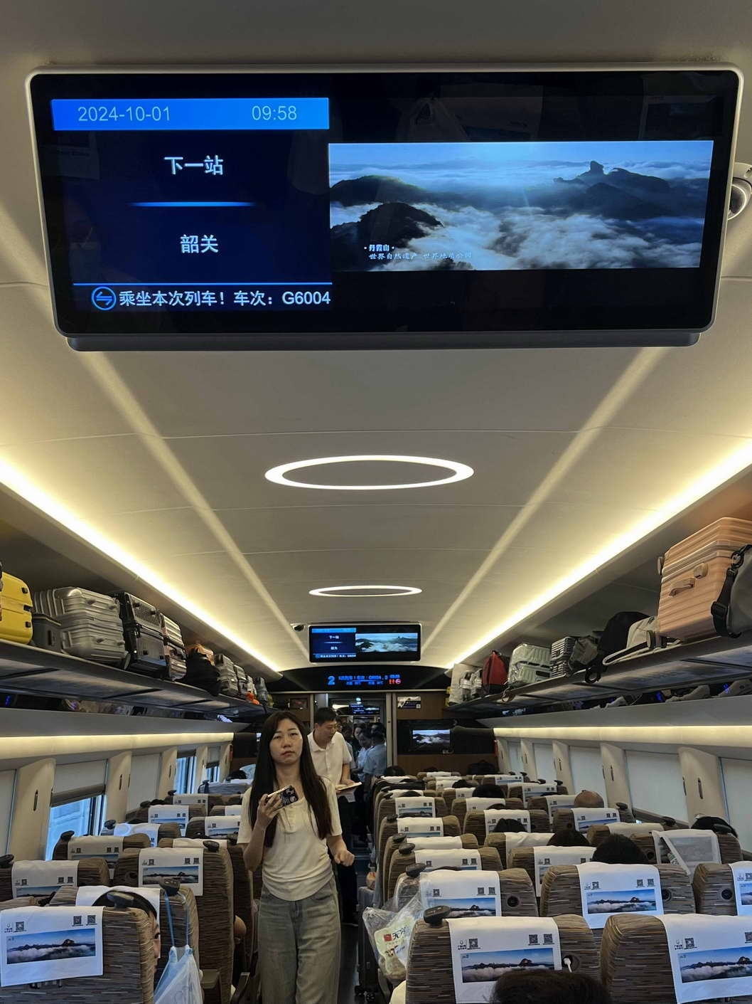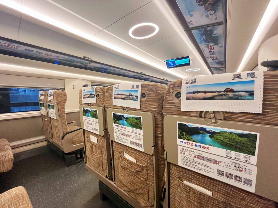 6点52分,“韶关号”准时启程,开启一场跨越山海的城市品牌传播与文旅交流盛宴。驰骋的列车成为展示韶关旅游形象的新平台。丹霞山、南华禅寺等韶关文旅名片通过列车播放器、座位头片、桌贴、行李架贴、海报、语音播报等高铁多媒体矩阵向旅客呈现“岭南名郡”的山水文化名城气质,向广大旅客发出“善美韶关欢迎您”的邀约。