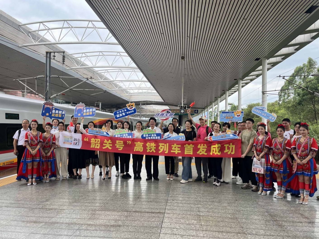 “善美韶关欢迎您”“汕头—韶关,山与海的相遇”……10月1日清晨6时许,“韶关号”首发式氛围组已上线,活跃在汕头站候车厅、检票口、站台,与旅客们合影互动,仪式感拉满。