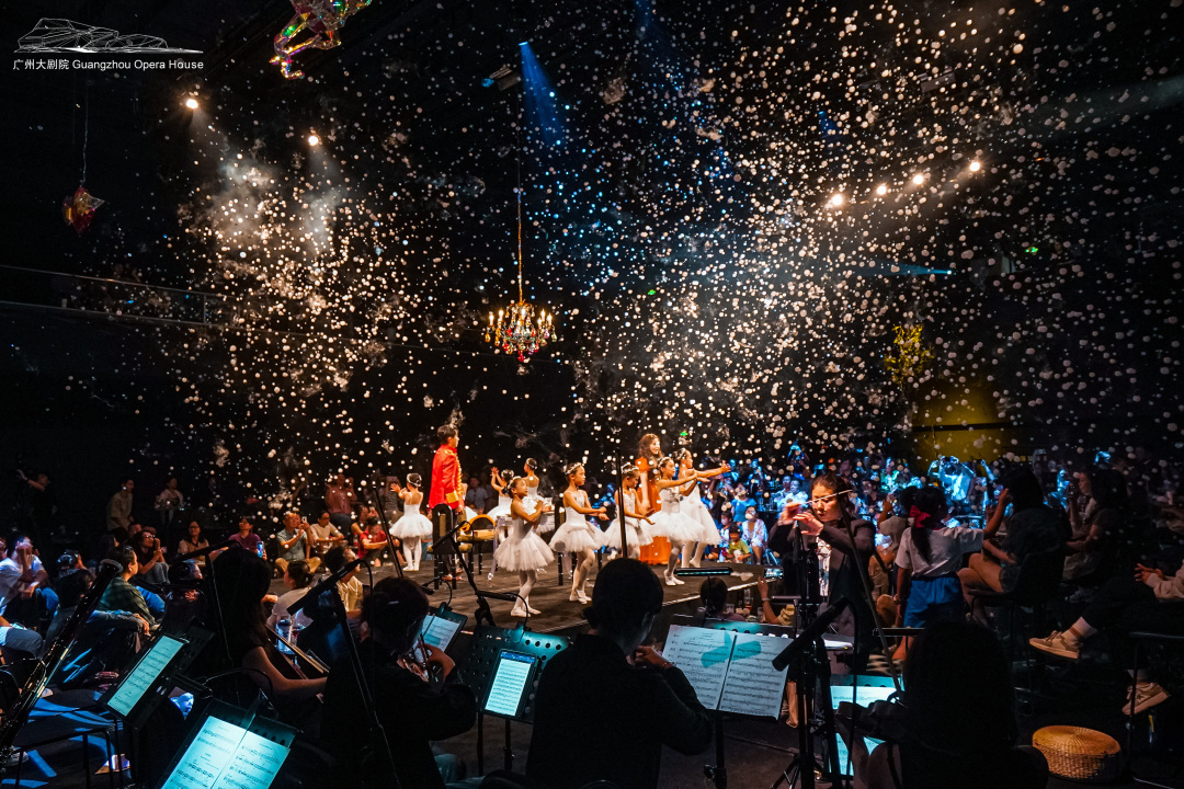 剧终时,泡泡如同繁星点点般洒落,观众仿佛置身于童话世界之中,喝彩此起彼伏。主持人询问现场有多少人是第一次观看歌剧,有不少观众大方地举起手。其中一位观众激动地说:“感觉自己仿佛与在场的每一位观众一样,共同成为这场精彩演出的不可分割的一部分。这种沉浸式体验简直妙不可言!”