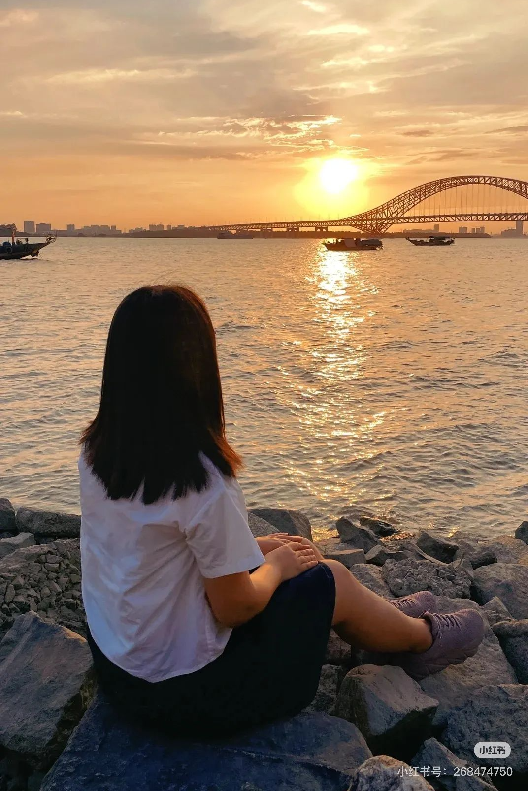 桥下不时会有轮船缓缓驶过