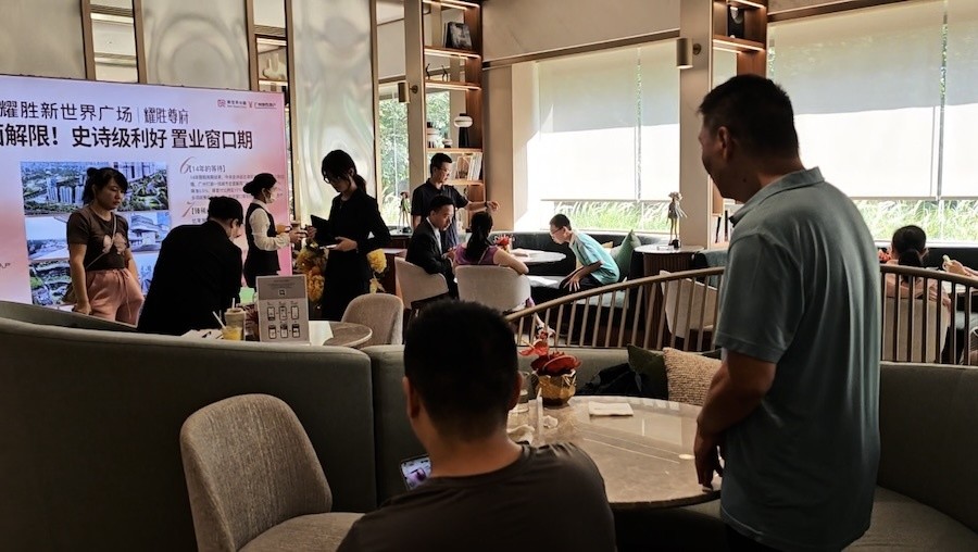 在越秀地产位于番禺陈头岗上盖的星瀚TOD 项目,置业顾问彭先生分享一个秘诀,那就是早餐吃多,吃好,吃饱,少喝水,做好全天不能再好好吃饭的准备。事实也是如此,“这两天非常非常忙,完全是没停过”。