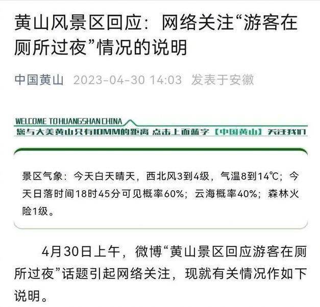 去年4月30日,黄山风景区管委会曾发布“游客厕所过夜”情况说明。网络图