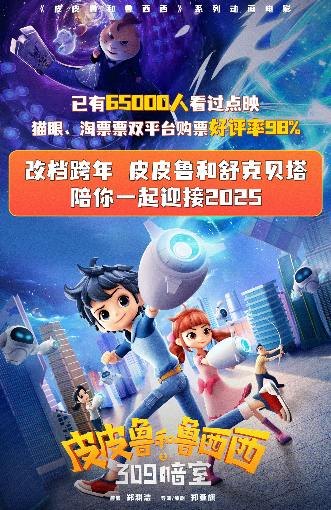 如今,片方宣布改档,“《皮皮鲁和鲁西西之309暗室》改档跨年,点映观影已达65000位伙伴,票务平台购票好评率高达98%!感谢大家支持!皮皮鲁与大家一起迎接新年,2025跨年影院见! ”