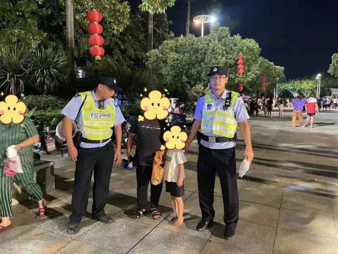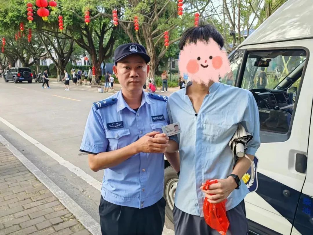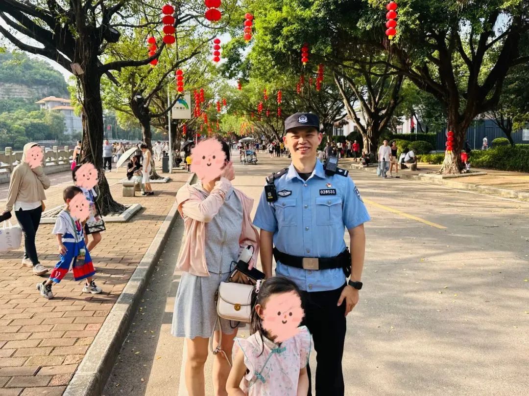 10月1日下午,港湾派出所民警何炎辉与辅警方海鹏在南沙天后宫海边沙滩巡逻时,发现一名与父母走散的小男孩。随后,民警将小男孩带至执勤点安抚,并通过景区广播寻找其家人。最终,民警顺利联系上小男孩的母亲。
