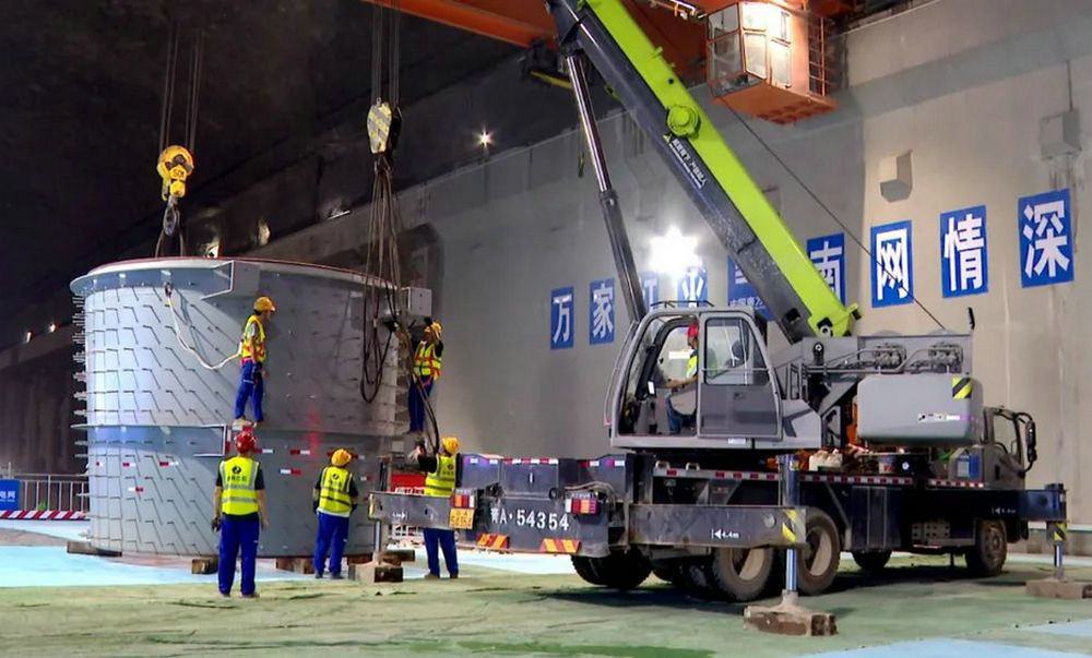 在肇庆浪江抽水蓄能电站交通洞入口,重型拖车正载着首节机组尾水管缓缓驶入。经过主厂房安装车间里数十名施工人员紧密配合,首节尾水管顺利吊装到预设位置。据了解,尾水管安装是项目进入机电设备安装的重要节点,标志着电站机电设备安装正式进入高峰阶段。