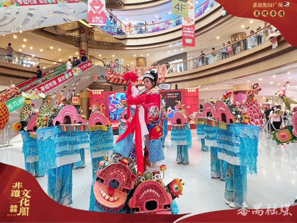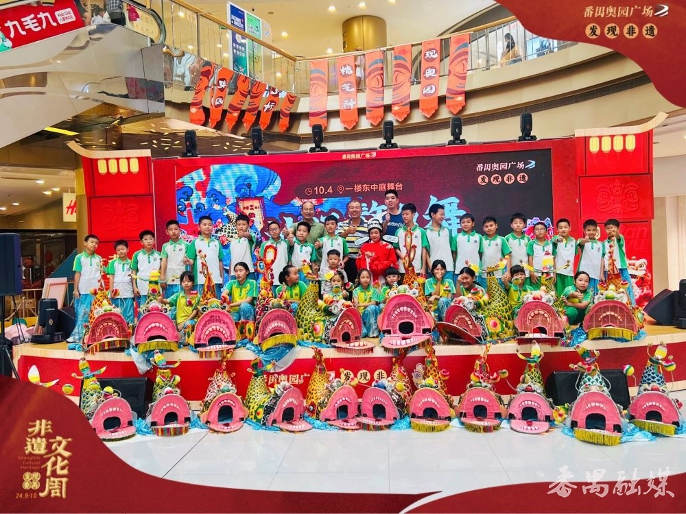 10月4日,由番禺区文化馆、奥园广场与沙涌小学联合组织,结合番禺非遗文化周主题活动在奥园广场中庭舞台举行沙涌鳌鱼舞表演活动,吸引了众多市民观看。