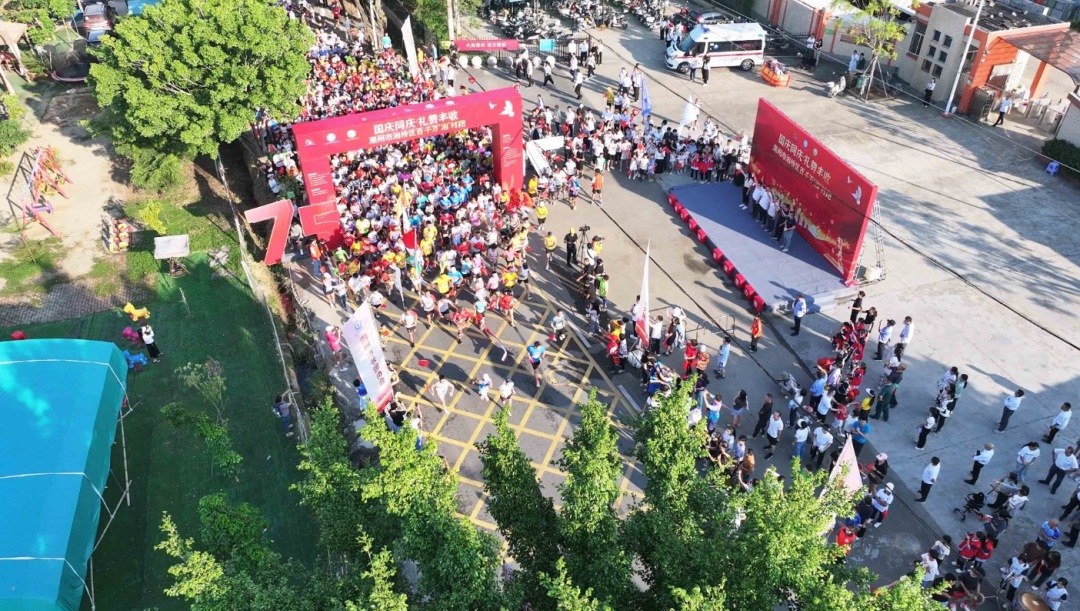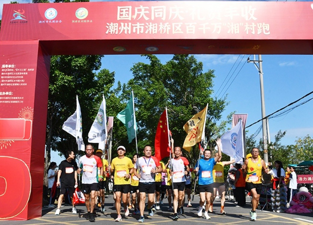 “预备,哔!”另一边,“国庆同庆·礼赞丰收”湘桥区百千万“湘”村跑活动也同步开启,800余名运动爱好者相聚在官塘镇顶乡村和苏三村风景秀丽的乡间赛道,用脚步丈量湘桥和美乡村独具魅力的自然风光和人文景观。在10.1公里赛道上,选手们精神饱满,斗志昂扬,奋力奔跑,尽情挥洒汗水。他们有的小幅摆动手臂,步伐沉稳、呼吸均匀,在漫长的赛道上一步一步挑战自己的体能极限;有的与队友相互鼓励、携手共进,迈着矫健的步伐向终点发起冲刺;有的走跑交替,欣赏着沿途美丽的风景,并不时拿起手机拍照记录。