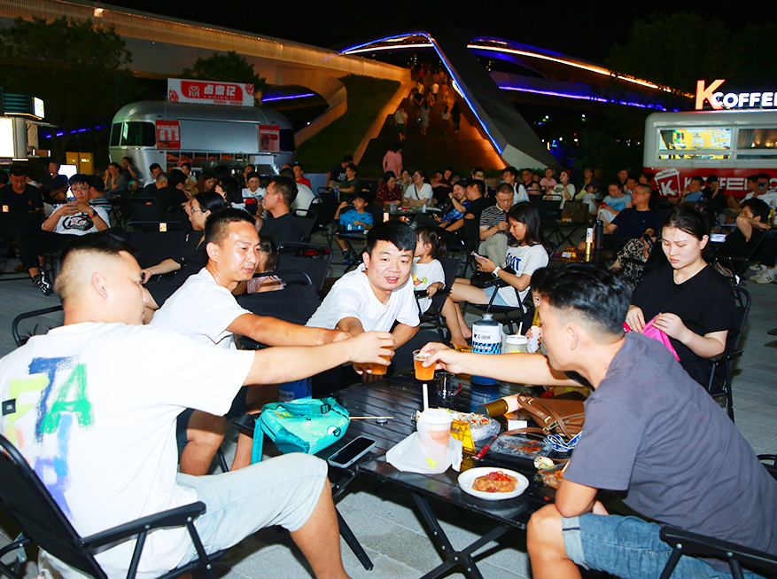 通过场景打造,说唱+乐队+电音的演出内容配合定制化炫酷舞台为卖点,融合星空露营的网红风格而打造的沉浸式酒吧餐饮空间,成为年轻人热爱的夜间娱乐消费新场所。
