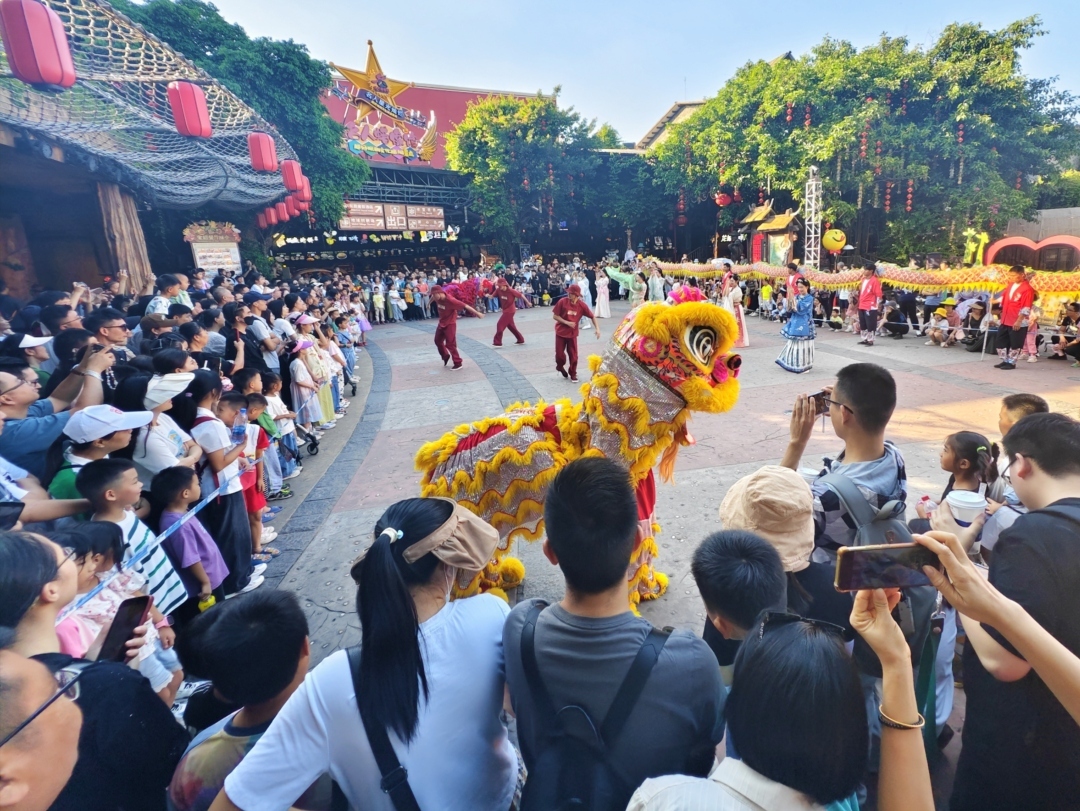 品岭南旧事,赏广府风情。10月1日至7日,国家5A级景区——佛山长鹿旅游休博园举办以“老城古事,鹿乡风情”为主题的系列活动,通过打造特色佛山老街、诗歌吟诵、武术表演、情景歌舞剧、风华旗袍秀、老城奇遇NPC快闪等活动,带领游客“穿越”时光,珍惜当下的幸福生活。数据显示,国庆七天,长鹿旅游休博园入园人数超26.3万人次。