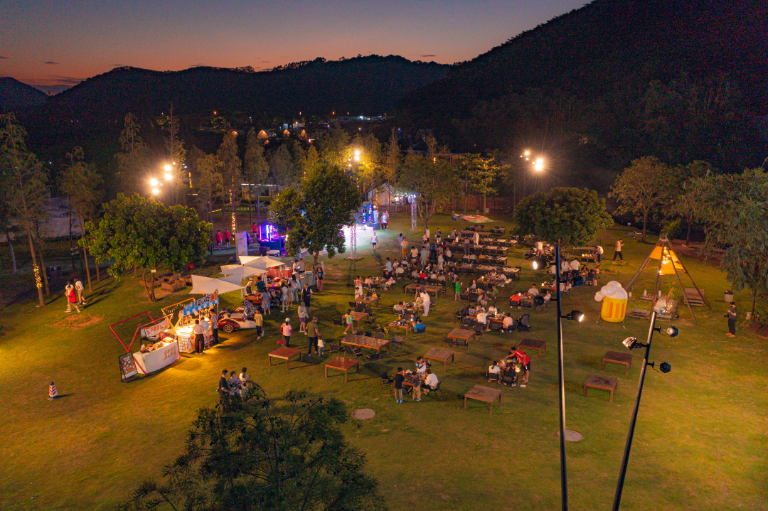 如果说缤纷花园是浪漫的象征,那么国庆期间限定上线的“动物王国啤酒节”则是激情与欢乐的代名词。在原野烧烤吧门前宽阔的草坪上,盛大的啤酒节派对每日热火朝天地进行。游客们不仅可以品尝到各地的精酿啤酒,还能享受到美味的烧烤和小吃。现场音乐与欢笑交织,气氛热烈非凡。此外,随行的小朋友们还能与度假区的“动物明星”近距离接触,通过与它们互动,感受生命的神奇与魅力。