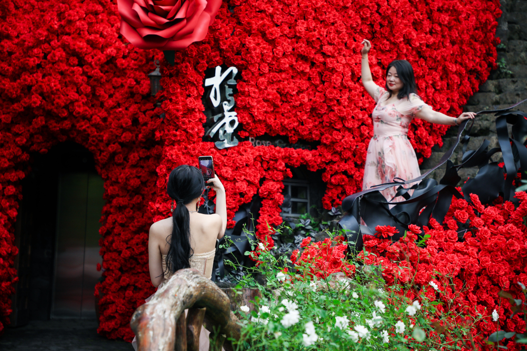 秋风轻拂,暖阳如织,天人山水度假区的各类花卉也迎来了下半年的最佳观赏期,并依此特别推出“秋日赏花计划”。沿循赏花步道,游客朋友们将感受一场花卉绽放的绚烂盛宴。其中,相与堂的“玫瑰瀑布”尤为壮观与热门——光影交错,万朵玫瑰倾泻落墙,宛如自然洒脱执笔的浪漫画作,引得游客朋友们纷纷在火山石阶驻足,打卡拍照,乐赏此景。