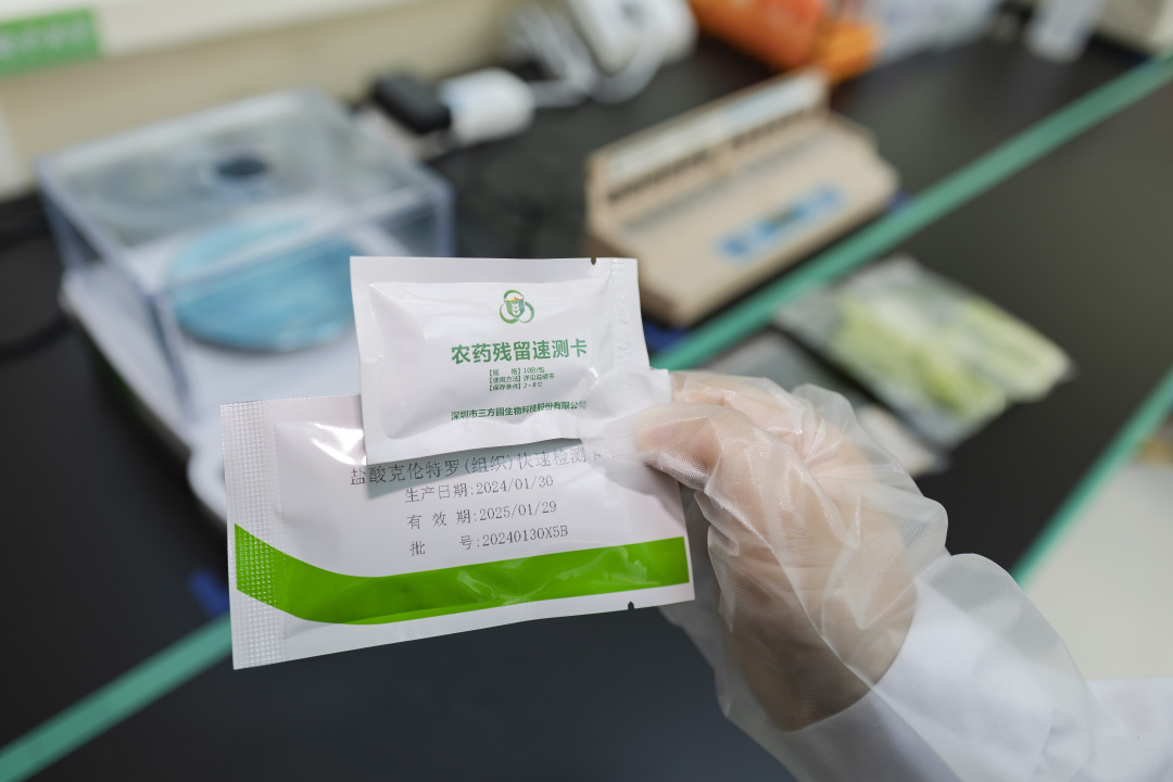 工作人员每天对食材进行抽样检测后,都会出具一张“食品原料快速检测报告”,并将其张贴在食堂内的食品安全第三方监管服务公示栏。记者在现场看到,每天张贴的快速检测报告显示,工作人员会对菜心、西芹、香葱、杏鲍菇、花椰菜等食材进行“有机磷和氨基甲酸酯类农残”项目检测,对生猪肉则采用胶体金法检测其是否含有“瘦肉精”。