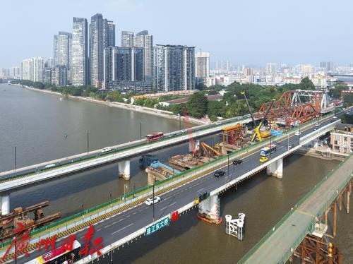 广湛高铁珠江桥改造项目进入新阶段,旧桥已全部拆除,新桥完成首梁顶推。