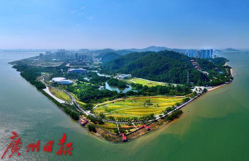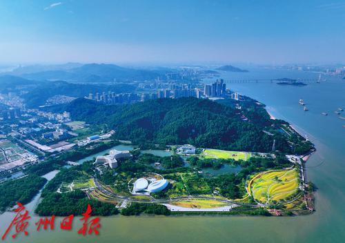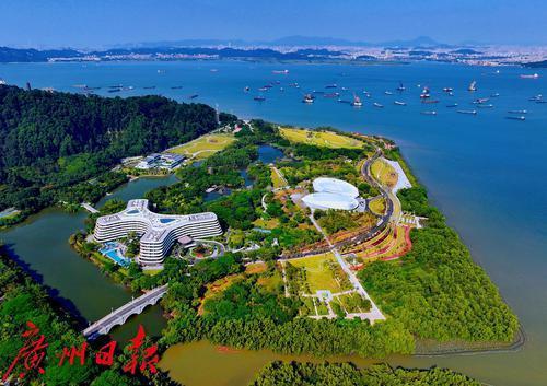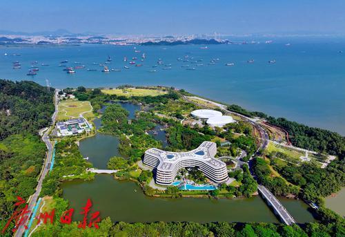 俯瞰南沙生态景观项目滨海公园。