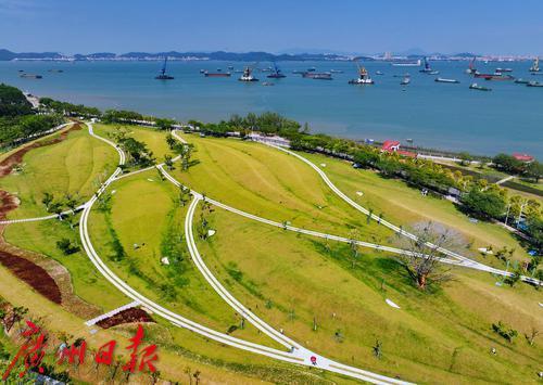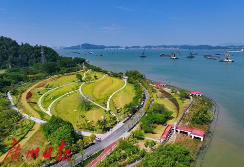 国庆期间,南沙滨海公园经过防洪(潮)安全系统提升和海岸带保护与利用综合示范区建设后焕新亮相。滨海公园位于珠江出海口虎门水道西岸,是南沙区重点打造的生态景观项目。该工程总投资约1.6亿元,按照200年一遇防洪标准打造超级生态堤,以更安全、更具品质的休闲观光体验,擦亮南沙城市的靓丽名片。
