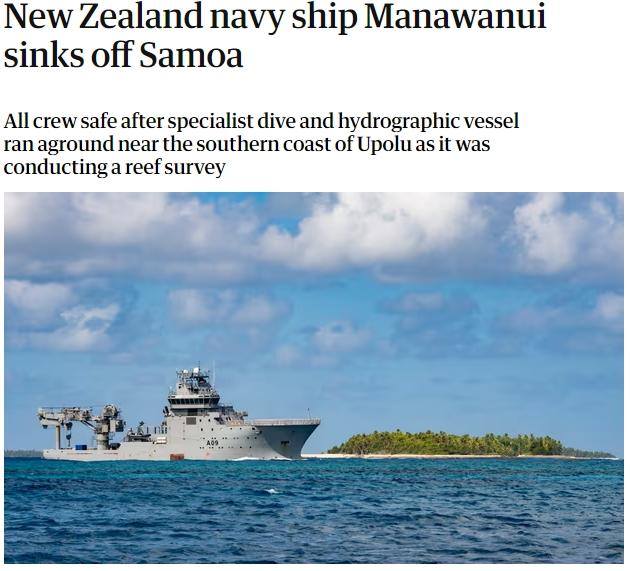 据英国《卫报》报道,当地时间6日,新西兰国防军表示,一艘新西兰皇家海军军舰在萨摩亚附近搁浅后沉没。