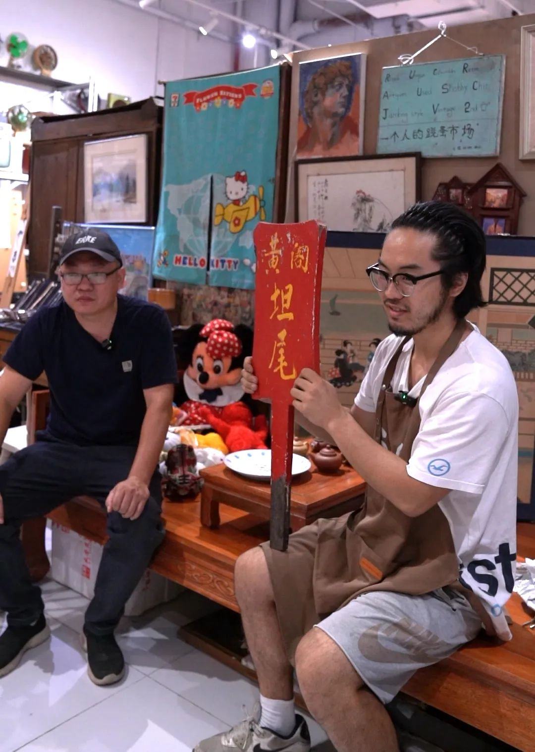刚进入“永续旧物”,正好遇到武楷斯的好朋友“帮主”——一位来自大岗镇的本地小伙,正背着一大袋的心水宝物来找他。