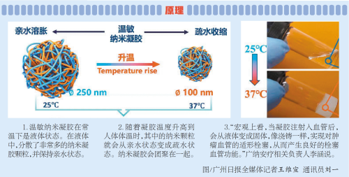 3.“宏观上看,当凝胶注射入血管后,会从液体变成固体,像浇铸一样,实现对肿瘤血管的适形栓塞,从而产生良好的栓塞血管功能。”广纳安疗相关负责人李涵说。